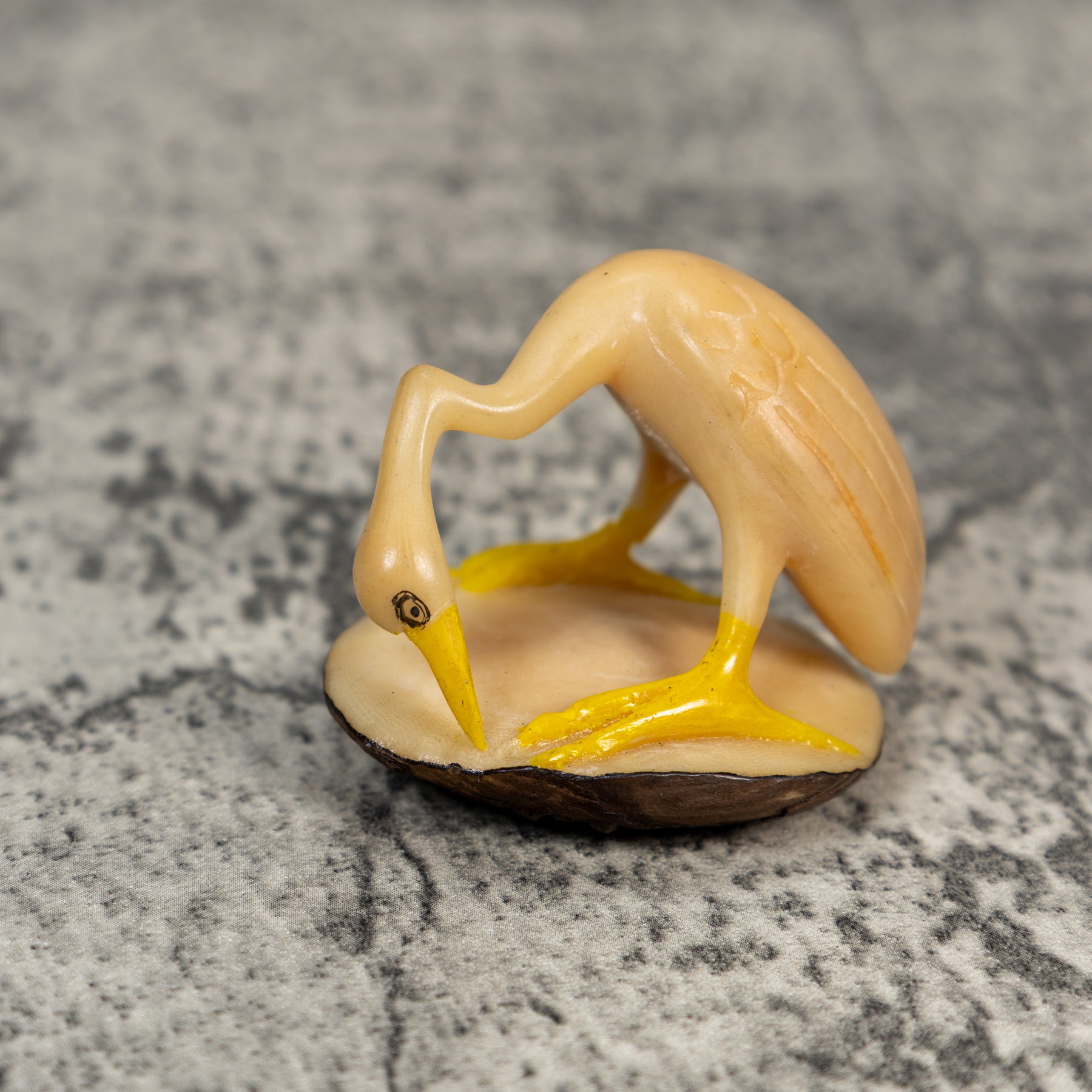 Yellow And White Waterbird Heron Tagua Carving